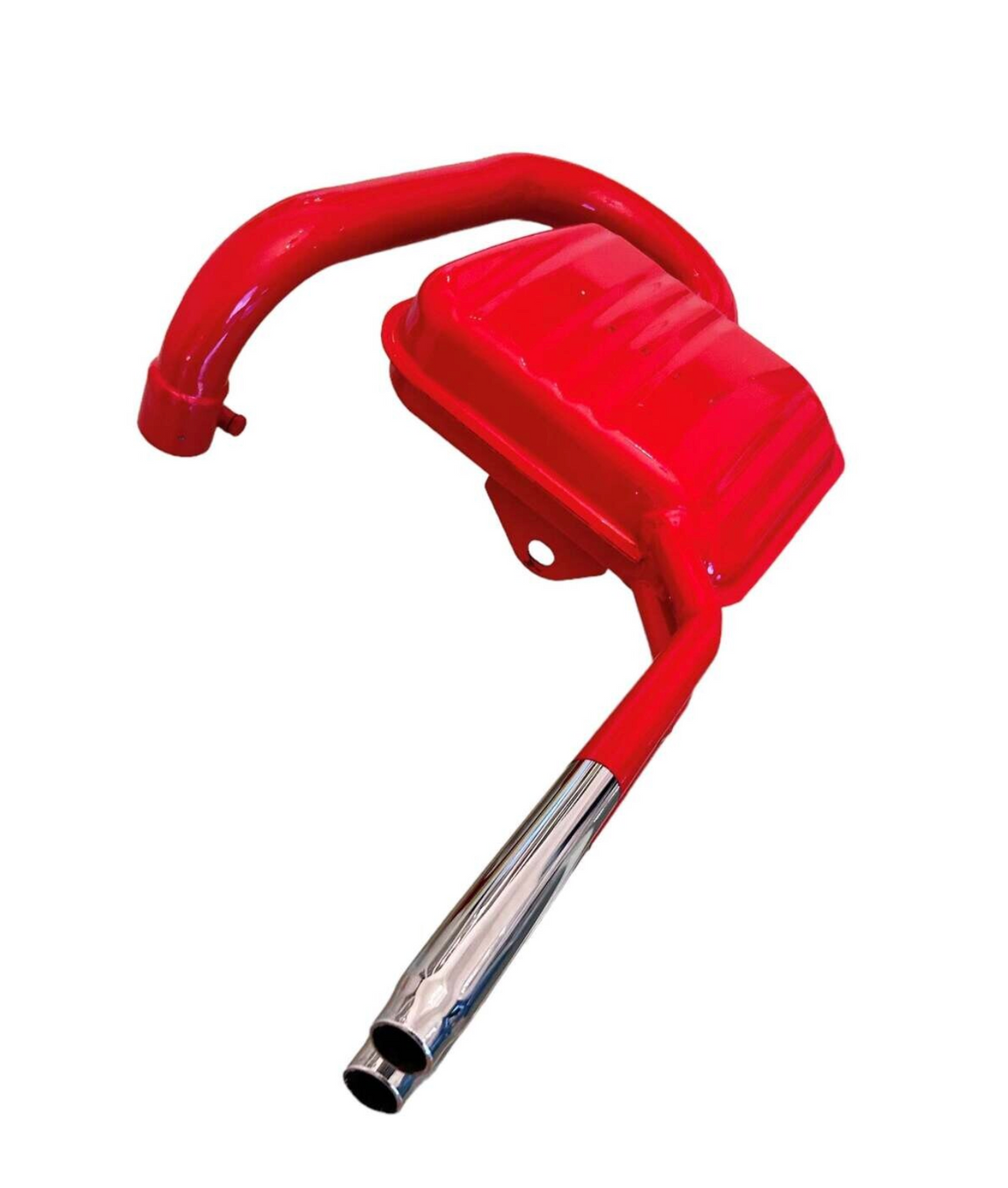 Marmitta Rosso Abarth. La fuoriuscita dei gas è facilitata dai tubi cromati. È adatto a qualsiasi velocità. Il suono è basso e più piacevole.